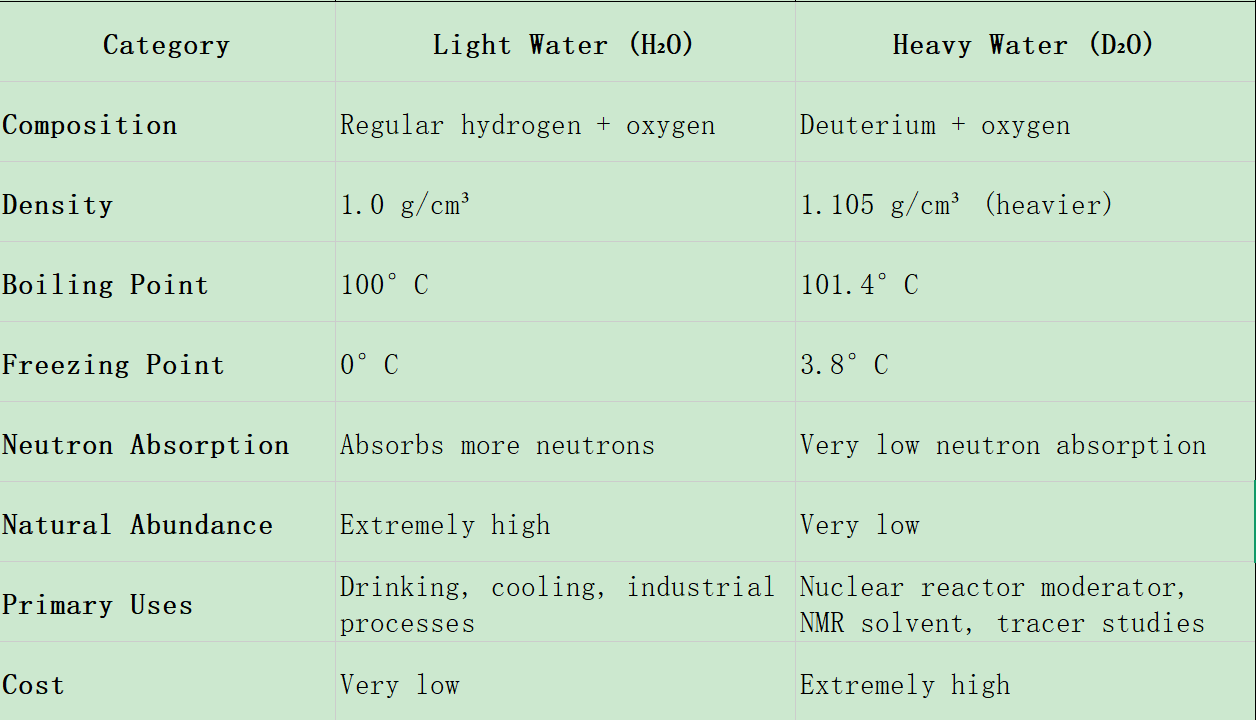 From physical characteristics to industrial applications, heavy water and light water play completely different roles and offer distinct scientific and technological value.
