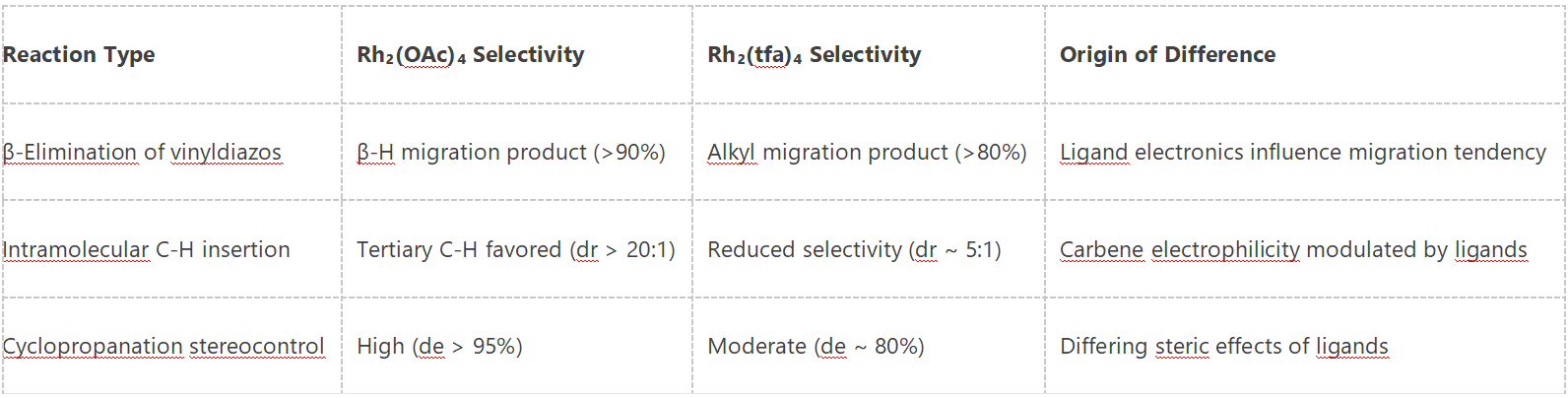 Table: Selectivity Comparison Between Rh₂(OAc)₄ and Rh₂(tfa)₄ in carbene Transfer